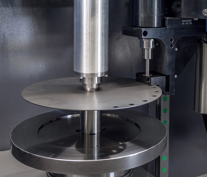 If, for example, a hole pattern has to be made in a spun flange, this can be done in one step on the PREMO spinning machine.