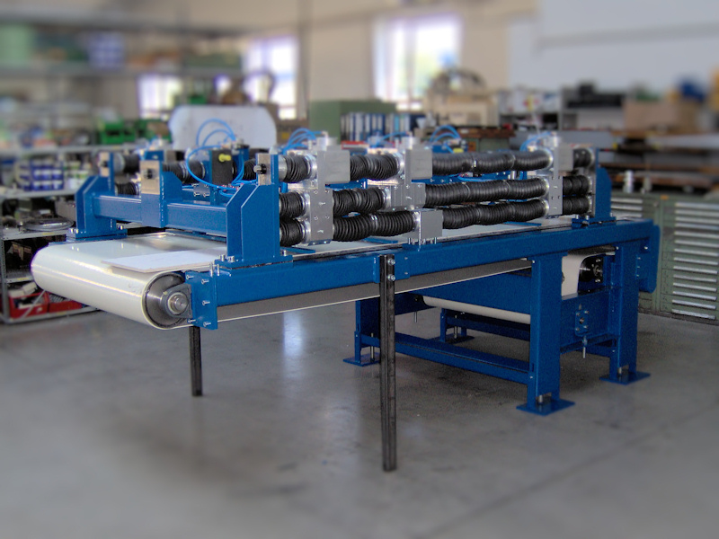 Our custom machine construction projects include stud welding machines, dismantling station for rollers, reverse vending machines for cups, cutting machines, angular transfer conveyors, cut-to-size units, conveyor systems and many more.