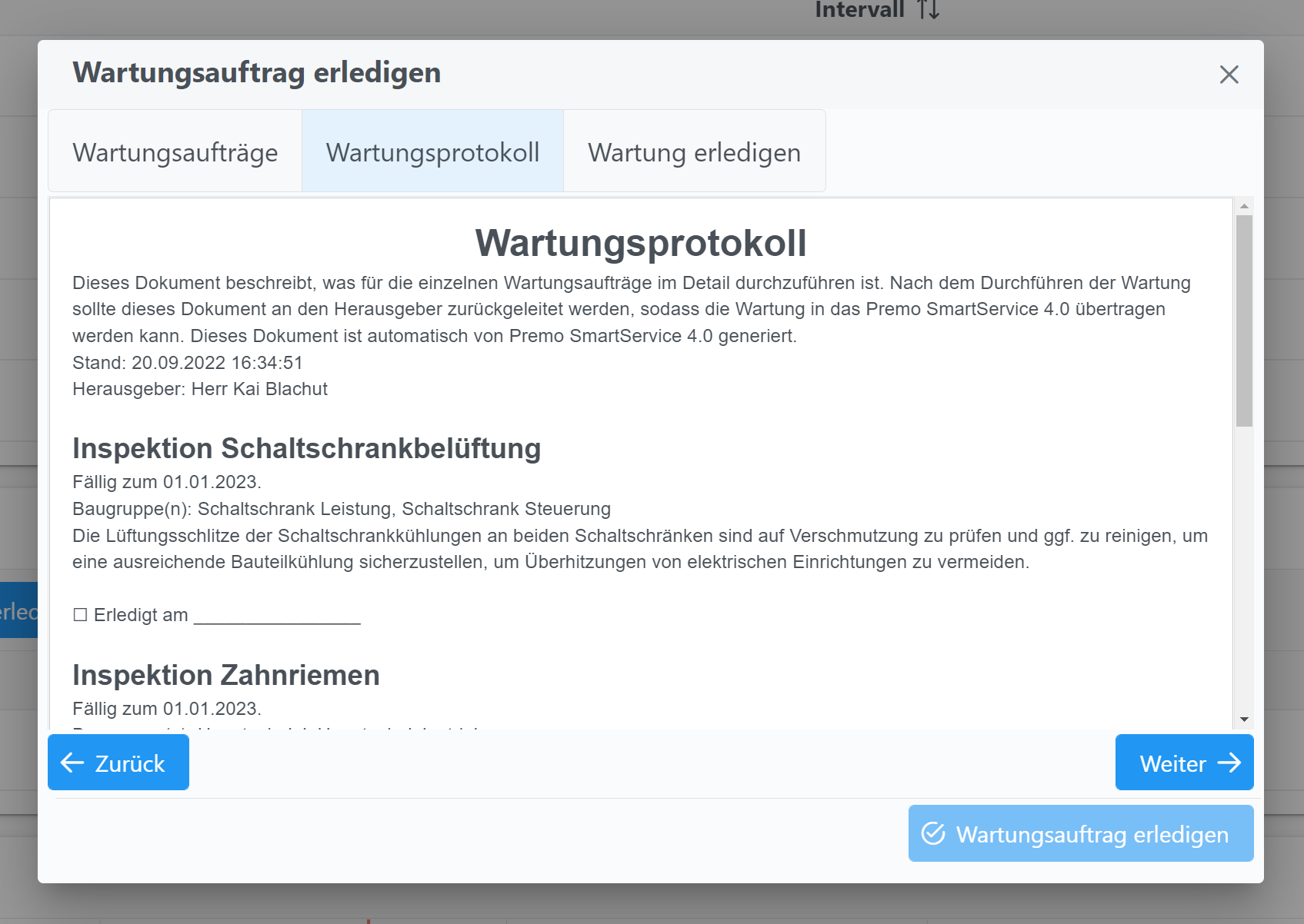 All maintenance and service calls are logged historically and can be traced over the entire life cycle of the machine. Seamless logging makes it possible to save the maintenance staff's expertise and problem solutions directly in PREMO SmartService 4.0. Maintenance forms and checklists are generated and saved to ensure optimum collaboration and communication between the client and maintenance staff.