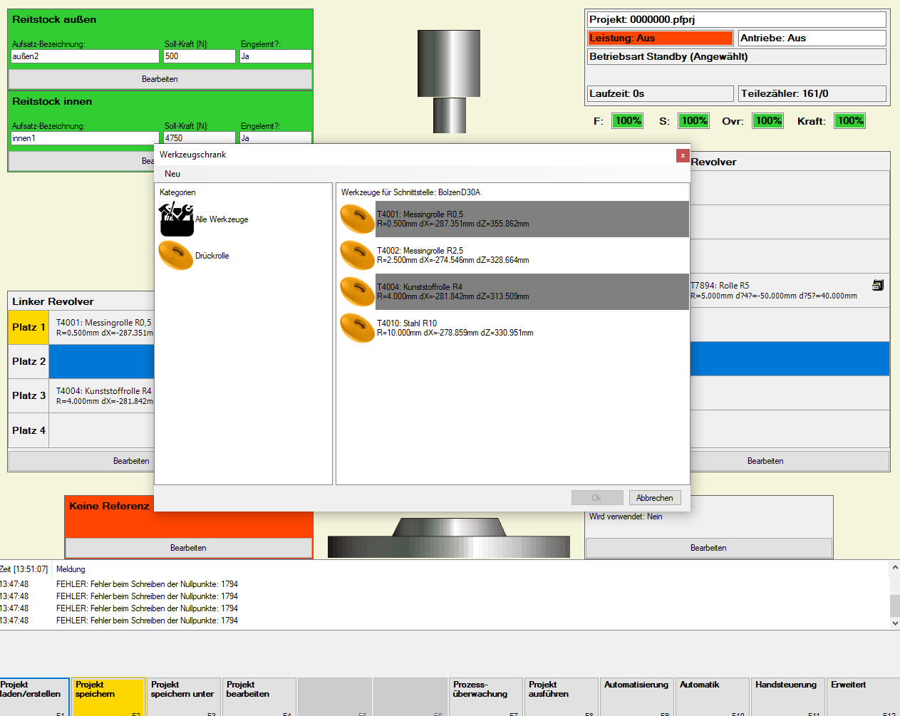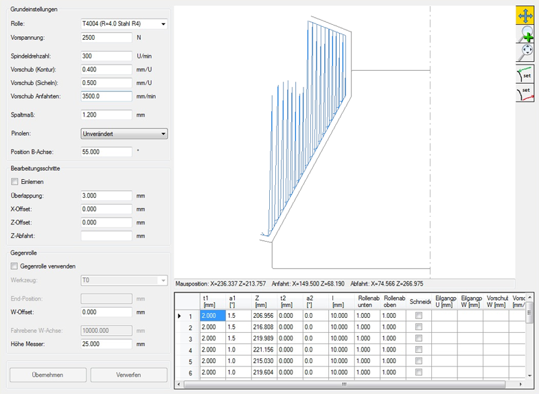 All travel paths can be reworked for optimizing movement sequences after teach-in. The re-entry into a teach-in spinning process is possible at each position. All data is saved graphically and as a CNC-Code.