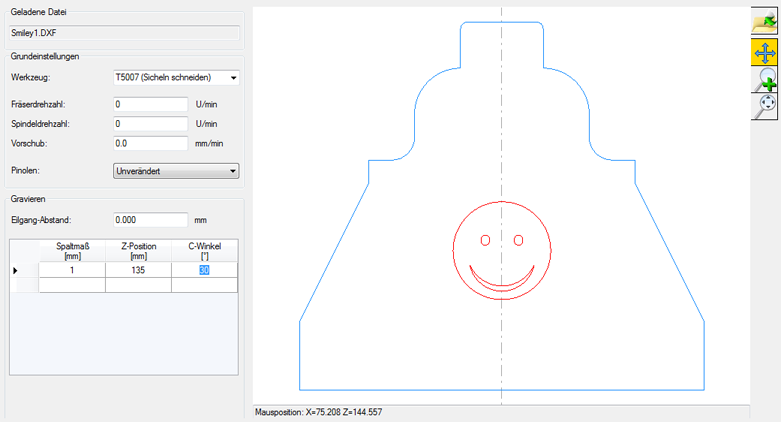 If a concave contour cannot be produced by sickling or levelling in one step, the inward curved area can be applied to the contour afterwards with the aid of this function.